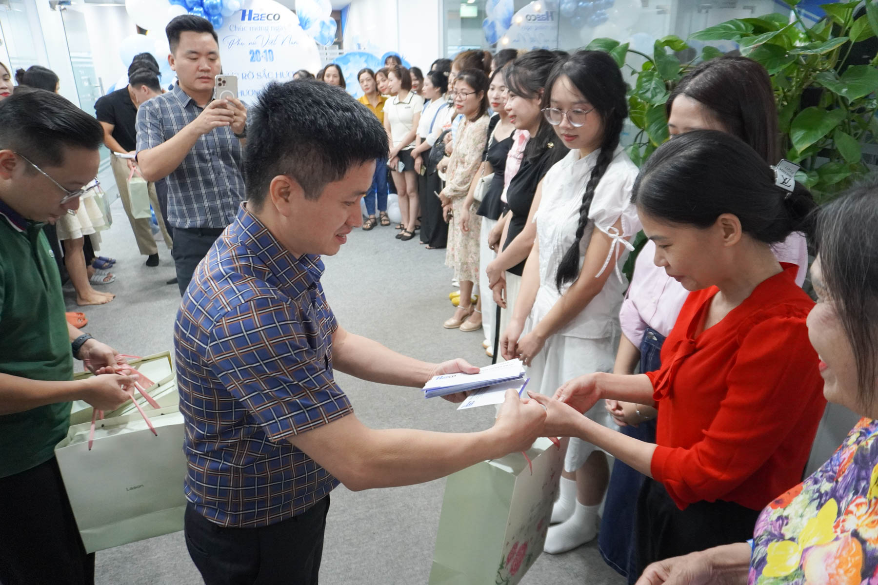 Thay mặt công ty, đại diện Ban Giám đốc HAECO đã trao tặng những lẵng hoa tươi thắm và phần quà ý nghĩa, thay cho lời cảm ơn chân thành, chúc các chị em luôn xinh đẹp, hạnh phúc và rực rỡ trong cuộc sống.